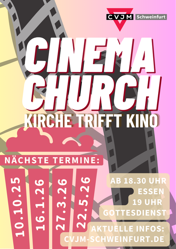 Bei Cinema Church kommt das beste zusammen: Kino und Gottesdienst. Gemeinsam singen, beten und erfahren wir etwas von Gott. Das alles bei gemütlichem Kinofeeling mit Popcorn und einer Botschaft zu einem Film. Nach dem Gottesdienst sehen wir uns den Film des Abends komplett an.